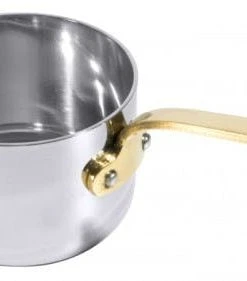 Contacto 3x Stielkasserolle 5 Cm Flach Edelstahl Mit Messinggriff Mit Beidseitigem Ausguss
