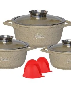 Null Kochgeschirr 6 Teilig Topf Induktion ø 20-28cm Kochtopfset Mit Silikongriffe Aluminium Guss Rot
