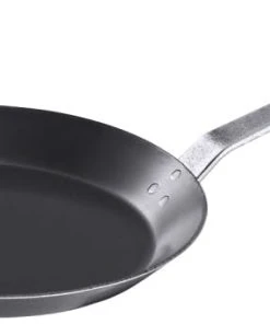 2x Eisenpfanne, Lyoneser Form aus ungeschwärztem flachem Stahl, mit geschmiedetem Hakengriff, induktionsgeeignet, schwere Qualität Durchmesser: 20 cm, Höhe: 3 cm, Stiellänge: 18 cm