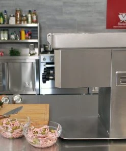 - Ebenfalls als Streifenschneider in 3 mm geeignet. Hierfür werden die geschnitten Scheiben noch einmal durchgelassen