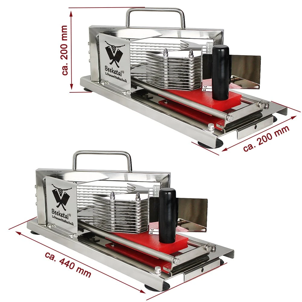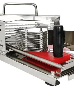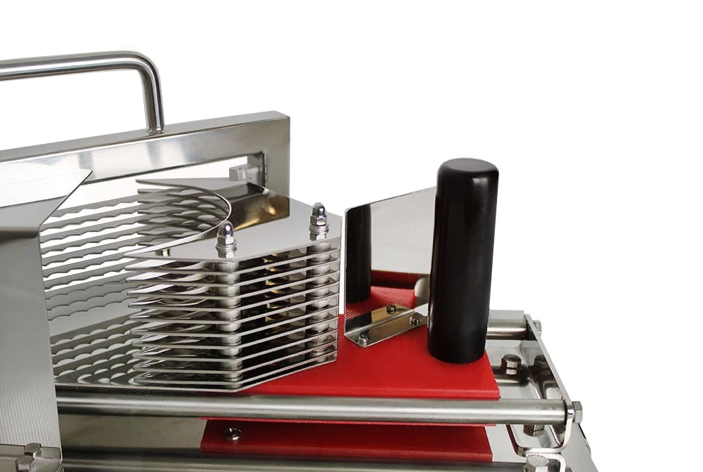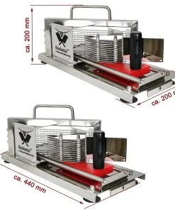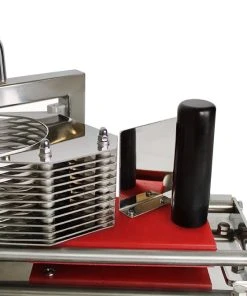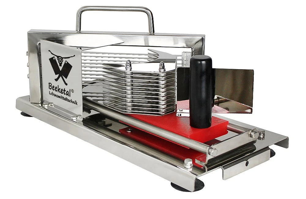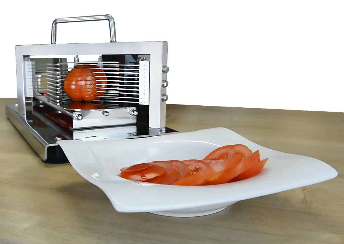 Die einfache und sichere Handhabung ist hierbei besonders hervorzuheben.Der Tomatenschneider ist erschwinglich und durch den hohen möglichen Durchsatz, ergibt sich eine Wirtschaftlichkeit die seines gleichen sucht.