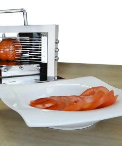 Der Tomatenschneider ist ebenfalls für den privaten Gebrauch für z.B. Familienfeiern, Vereine etc. sehr gut geeignet.