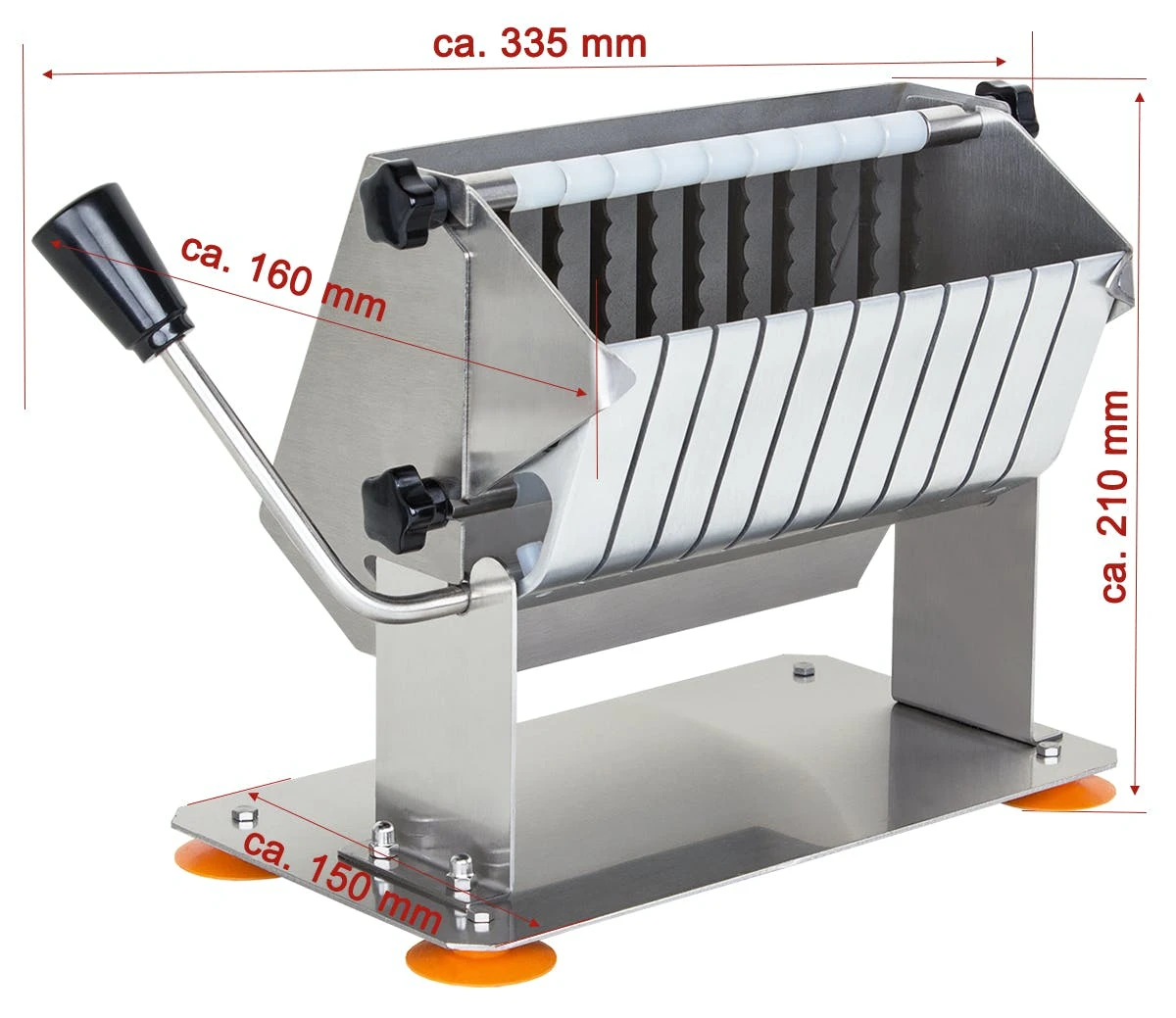 Die einfache und sichere Handhabung des Currywurstschneiders ist besonders hervorzuheben. Zudem ist der Currywurstschneider sehr leicht und schnell zu reinigen.