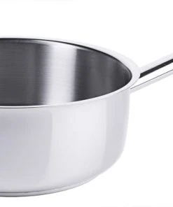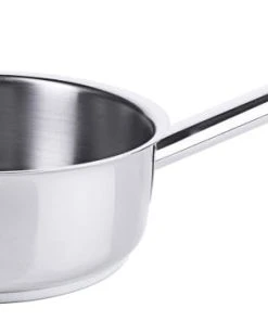 aus 1,2 mm Edelstahl 18/10, nicht induktionsgeeignet, mit genietetem Messinggriff, ideal zum Präsentieren. Durchmesser innen: 8,5 cm, Höhe: 4,5 cm, Volumen: 0,25 l, Stiellänge: 7 cm