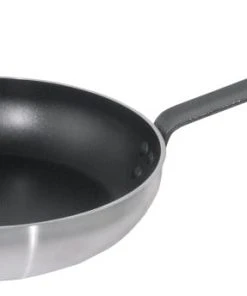 Antihaft-Bratpfanne, aus Aluminium, mit PTFE-Beschichtung, plangedrehter Boden, flacher dreifach vernieteter Eisengriff, nicht induktionsgeeignet