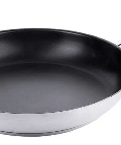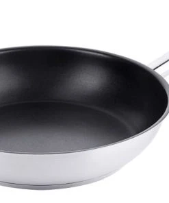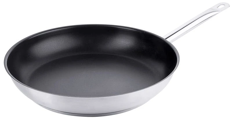 Antihaft-Bratpfanne, aus Edelstahl 18/10, mit PTFE-Beschichtung, mit Rohrgriff, verkapselter Boden, induktionsgeeignet