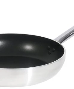 Antihaft-Bratpfanne, aus Aluminium, mit PTFE-Beschichtung, plangedrehter Boden, Rundstiel aus Edelstahl, nicht induktionsgeeignet