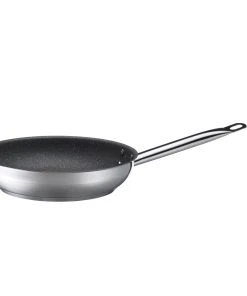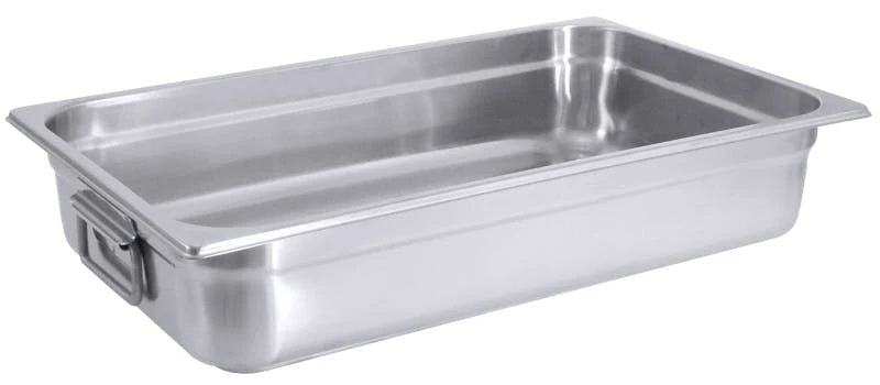 Bratpfanne GN 1/1, mit Fallgriffen an den kurzen Seiten, aus Edelstahl 18/10, matt poliert, mit Sandwichboden, induktionsgeeignet