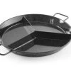 Bratpfanne / Paellapfanne, aus Edelstahl 18/10, matt poliert, mit zwei seitlichen Kaltgriffen und Schüttrand, 7 mm Sandwichboden, induktionsgeeignet (bis Ø 40 cm), schwere Qualität
