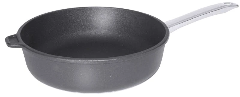Bratpfanne, hohe Form, aus handgegossenem Aluminium-Kokillenguss, Antihaftbeschichtung aus Titan-Aluminiumoxyd-Plasma, backofenfest bis +250°C, mit Stiel aus Edelstahl 18/10, nicht induktionsgeeignet, hochwertiges Qualitätsprodukt