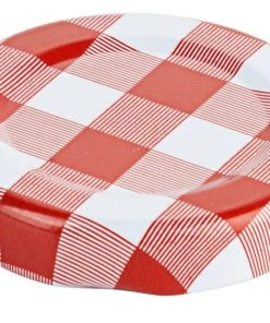 Deckel zu Marmeladenglas , rot-weiß, aus glattem geblasenem Glas, mit dichtem weißem Schraubdeckel