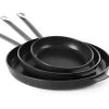 Bratpfanne, flach, aus Gusseisen, mit Griff aus Edelstahl 18/10, schwere, hochwertige Qualität