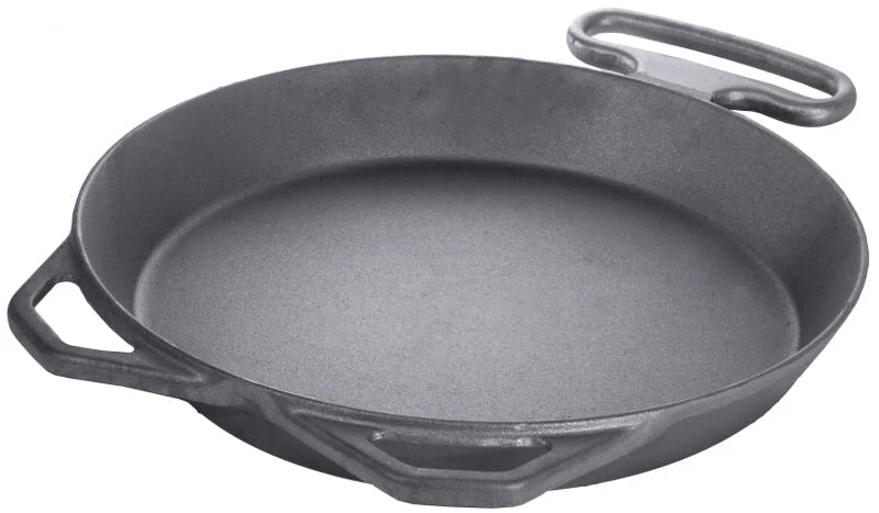 Eisenguss-Riesenpfanne mit einem abnehmbaren Stiel / einem Doppelgriff, hochqualitatives Produkt, aus deutscher Fertigung, Länge des abnehmbaren Stiels: 48 cm
