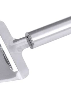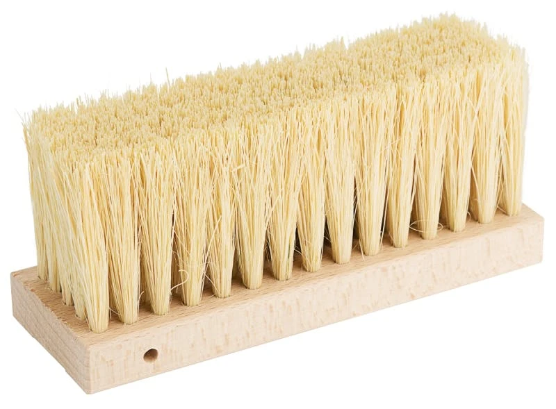 Ersatzbürste mit Messingborsten für Pizzaofenbürste, aus Edelstahl 18/10, Borsten wahlweise aus Palmenfaser oder Messing auf unlackiertem Buchenholz, starre Stange (Ø 1,8 cm) mit zwei lackierten Buchengriffen, davon einer frei beweglich, Schnellwechselvorrichtung für Bürste, nicht spülmaschinengeeignet