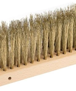 Ersatzbürste mit Naturborsten für Pizzaofenbürste, aus Edelstahl 18/10, Borsten wahlweise aus Palmenfaser oder Messing auf unlackiertem Buchenholz, starre Stange (Ø 1,8 cm) mit zwei lackierten Buchengriffen, davon einer frei beweglich, Schnellwechselvorrichtung für Bürste, nicht spülmaschinengeeignet