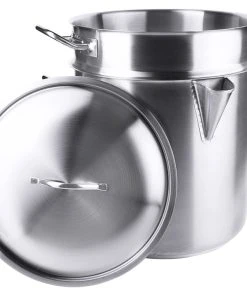 Ersatzmessstab Simmertopf, aus Edelstahl 18/10, hochglänzend, mit Kompensboden, induktionsgeeignet, mit Deckel, Messstab und Einfülltrichter, zum Zubereiten von Saucen und Milchspeisen ohne Anhaften und Überkochen der Speisen