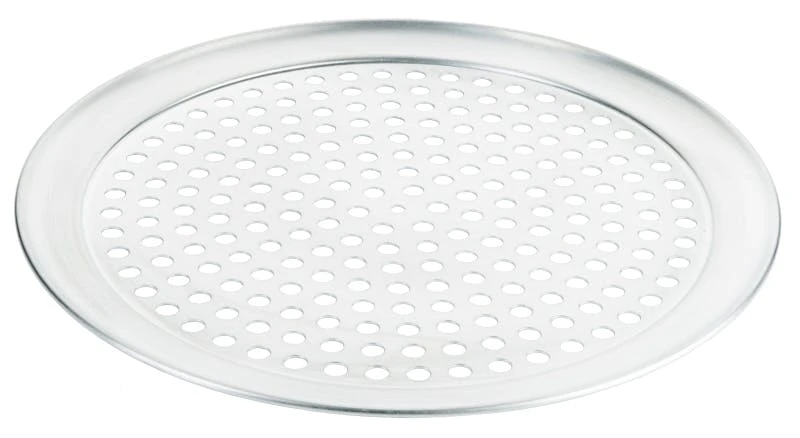 Gelochtes Pizzablech, aus Aluminium, 10 mm Lochdurchmesser, nicht spülmaschinengeeignet, für extra knusprige Pizzaböden, ideal auch für tiefgekühlte Pizza