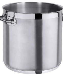Kochtopf, hoch, aus Edelstahl 18/10, hochglänzend, mit Kaltgriffen und Schüttrand, 8 mm Sandwichboden, induktionsgeeignet, schwere Qualität