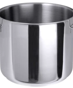 Kochtopf, mittelhoch, aus Edelstahl 18/10, matt poliert, mit Kaltgriffen und Schüttrand, 7 mm Sandwichboden, induktionsgeeignet, schwere Qualität