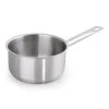 Kochtopf, niedrig, aus Edelstahl 18/10, seidenmatt gebürstet mit (bis Ø 32 cm hochglänzendem) Schüttrand, verkapselter Sandwichboden, induktionsgeeignet, handliche Vollprofil-Kaltgriffe mit Schutzplatten, extra schwere Qualität