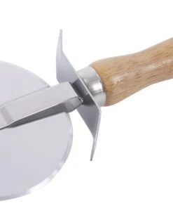 Pizzaschneider, aus Edelstahl, mit Holzgriff und Fingerschutz