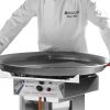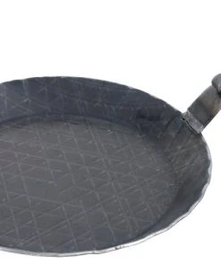 Brat- und Servier-Eisenpfanne, flache Form, aus kaltgeschmiedetem, geschwärztem Eisen, mit gebogenem Flachgriff, induktionsgeeignet, schwere Qualität