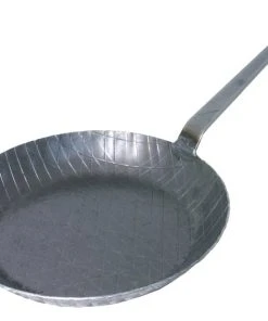 Brat- und Servier-Eisenpfanne, tiefe Form, aus kaltgeschmiedetem, geschwärztem Eisen, mit zwei ungeschwärzten, angesetzten Griffen, induktionsgeeignet, schwere Qualität
