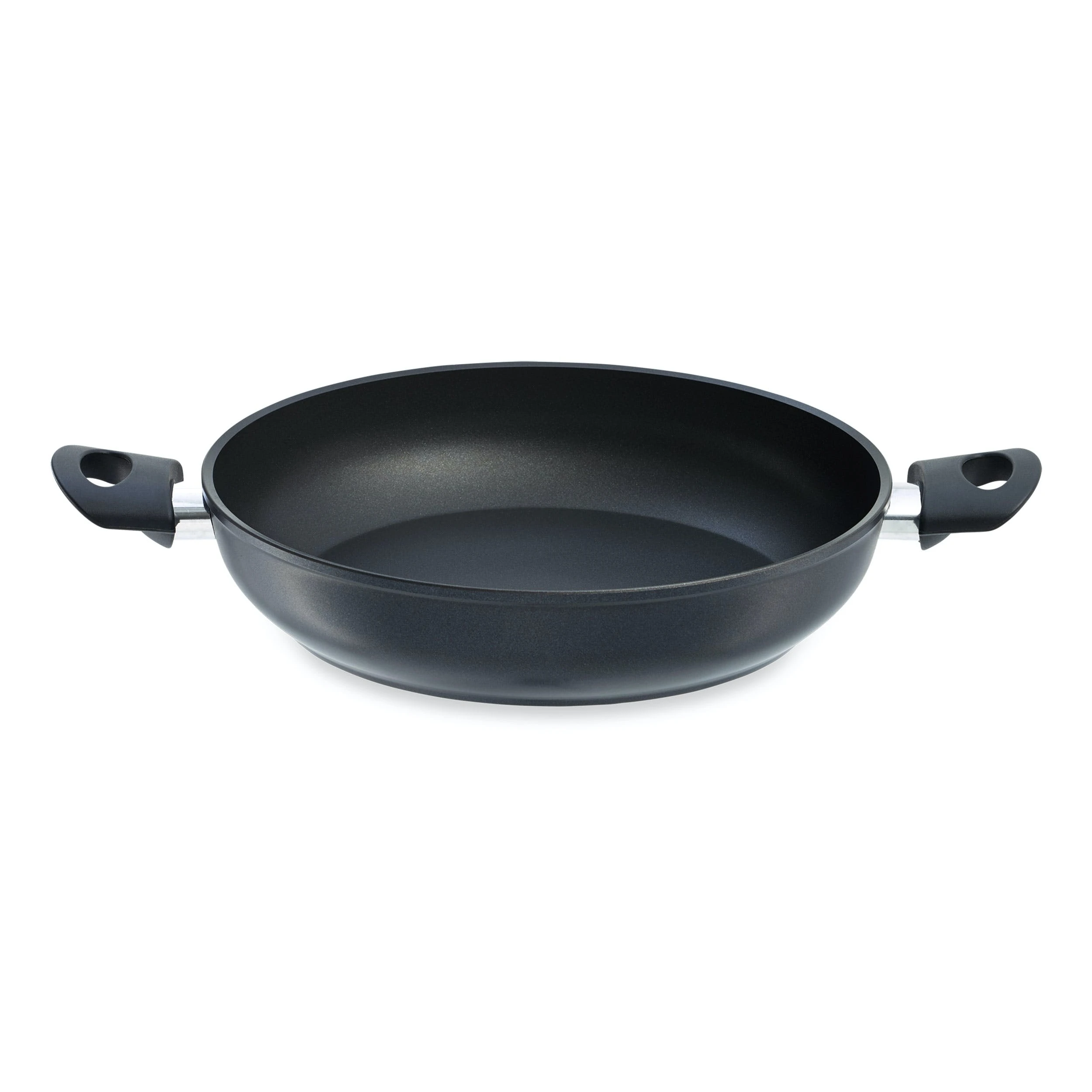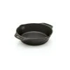 Brat- und Servier- Eisenpfanne, tiefe bauchige Form, aus kaltgeschmiedetem, geschwärztem Eisen, angesetzter Flachgriff mit Haken, induktionsgeeignet, schwere Qualität