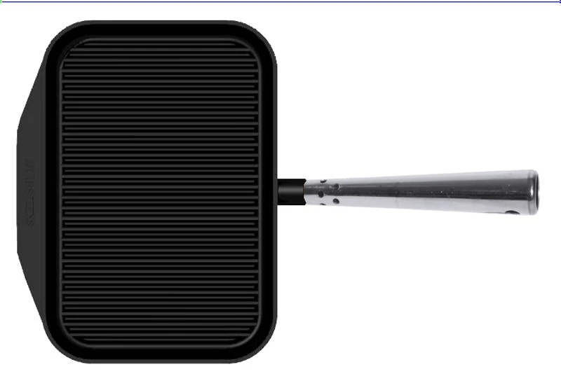Steakpfanne, rechteckig, aus Gusseisen, stark gerillte Bodenfläche, mit Griff aus Edelstahl 18/10, schwere, hochwertige Qualität