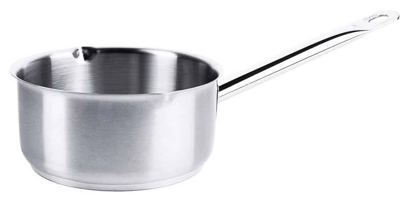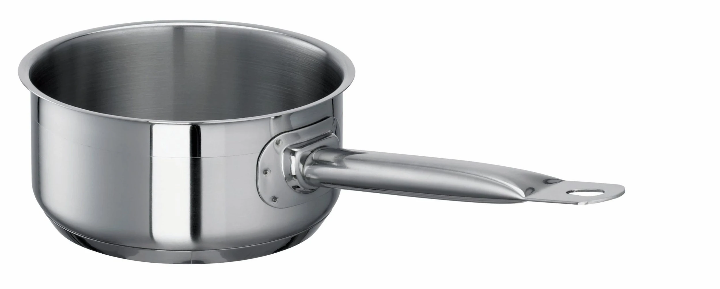 Stielkasserolle, aus Edelstahl 18/10, matt poliert, mit beidseitigem Ausguss, mit Rohrgriff, 7 mm Sandwichboden, induktionsgeeignet, schwere Qualität
