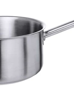 Stielkasserolle, mittelhoch, Sautoirform, aus Edelstahl 18/10, hochglänzend, mit Rohrgriff und Schüttrand, 8 mm Sandwichboden, induktionsgeeignet, schwere Qualität