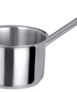 Stielkasserolle, niedrig, Sautoirform, aus Edelstahl 18/10, matt poliert, mit Rohrgriff und Schüttrand, 7 mm Sandwichboden, induktionsgeeignet, schwere Qualität