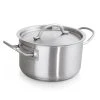 Stielkasserolle, niedrig, Sautoirform, aus Edelstahl 18/10, matt poliert, mit Rohrgriff und Schüttrand, 7 mm Sandwichboden, induktionsgeeignet, schwere Qualität