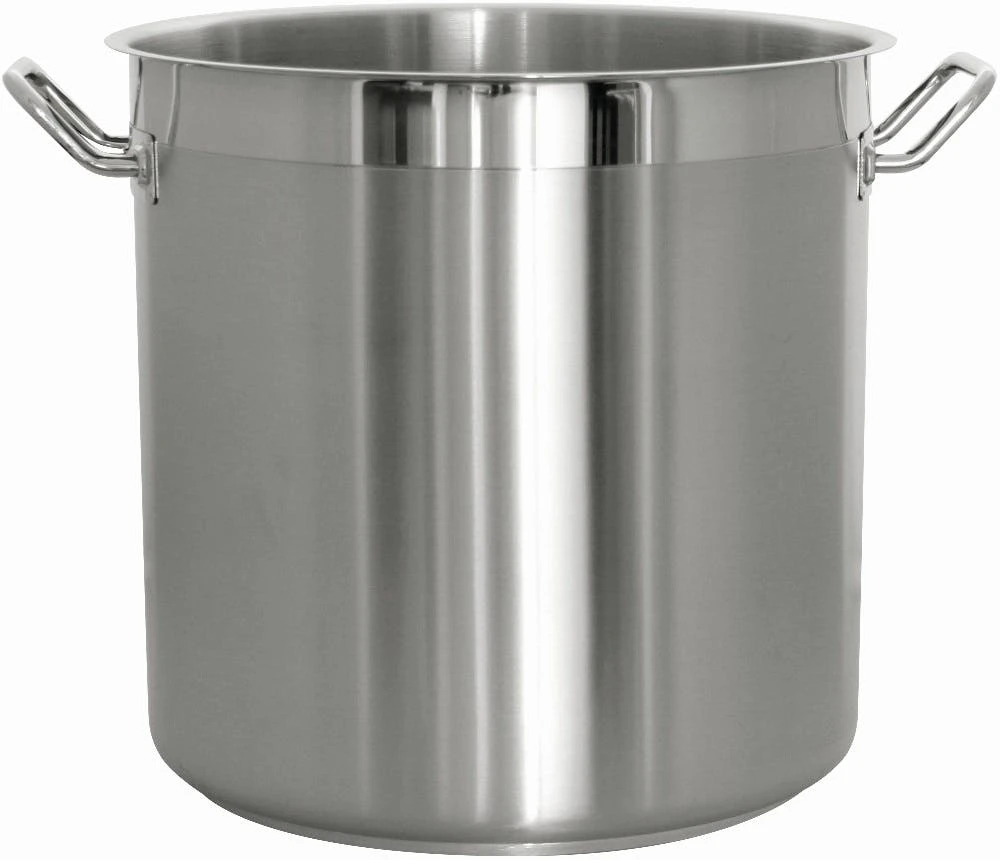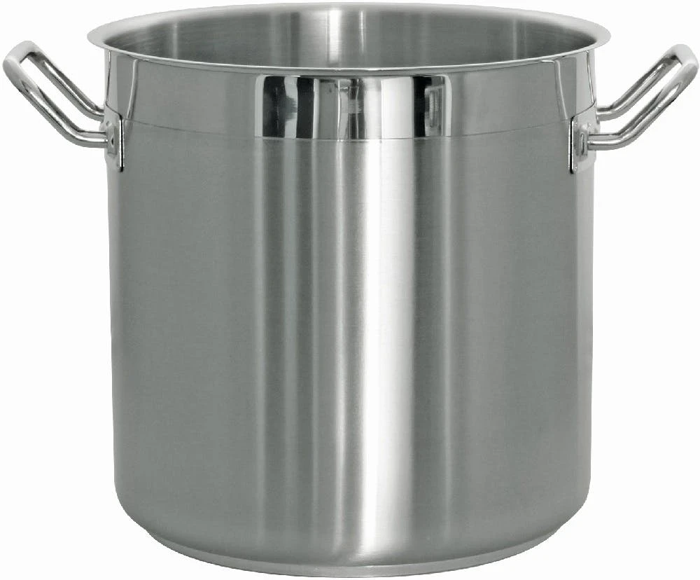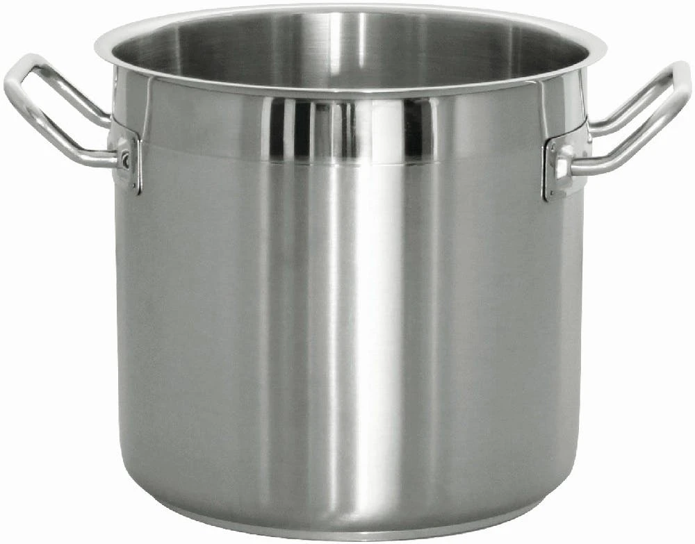 Kochtopf aus Edelstahl CNS 18/10 in absoluter Profi-Qualität. ++ satinierte Oberfläche ++ mehrfach punktgeschweißte Kalt-Griffe ++ 8mm Sandwitchboden (Edelstahl, Aluminium, magnetischer Stahl) ++ induktionsgeeignet ++ inkl. Schüttrand ++