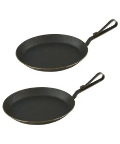 2 Stück im Set Servierpfanne aus Schmiedeeisen mit zwei Seitengriffen
