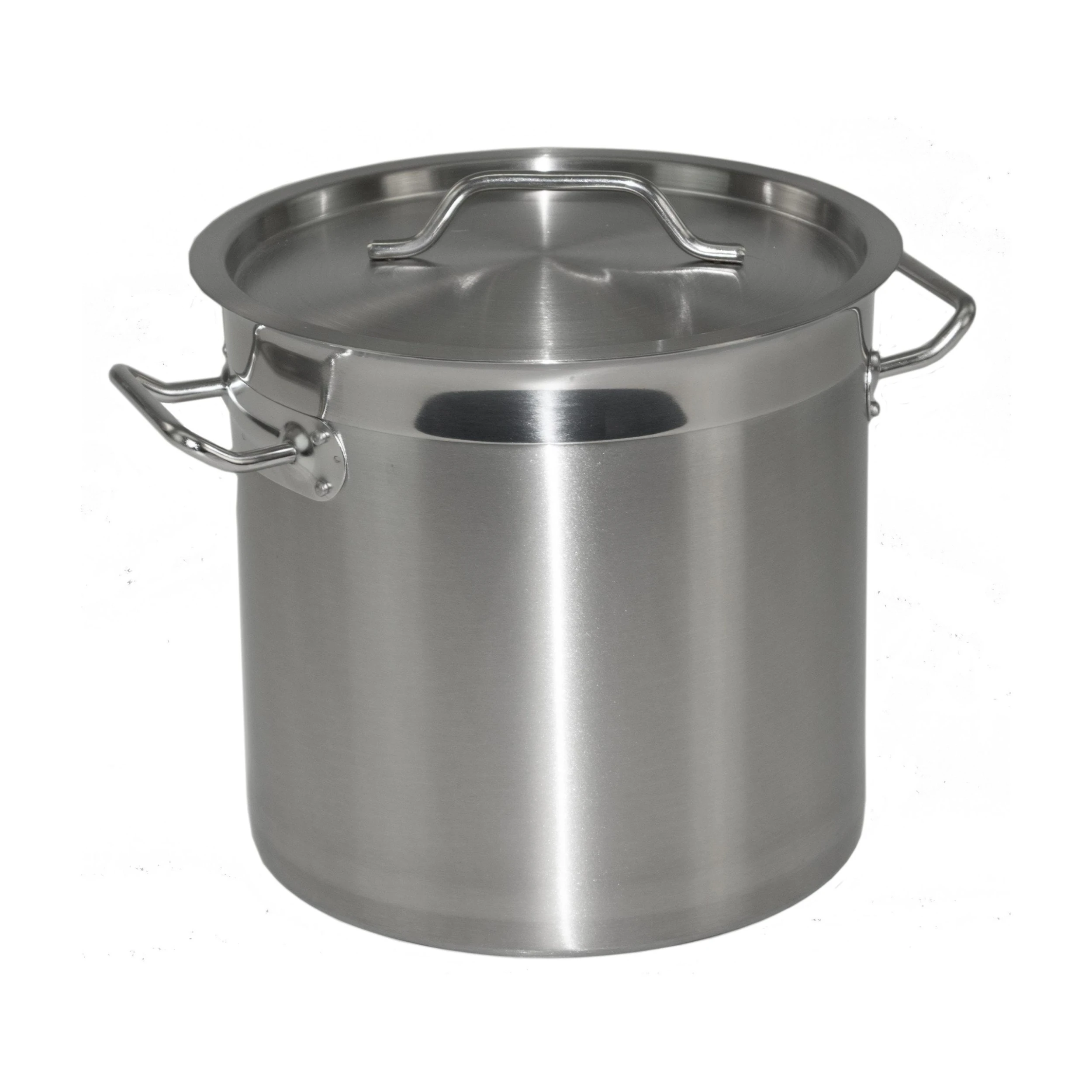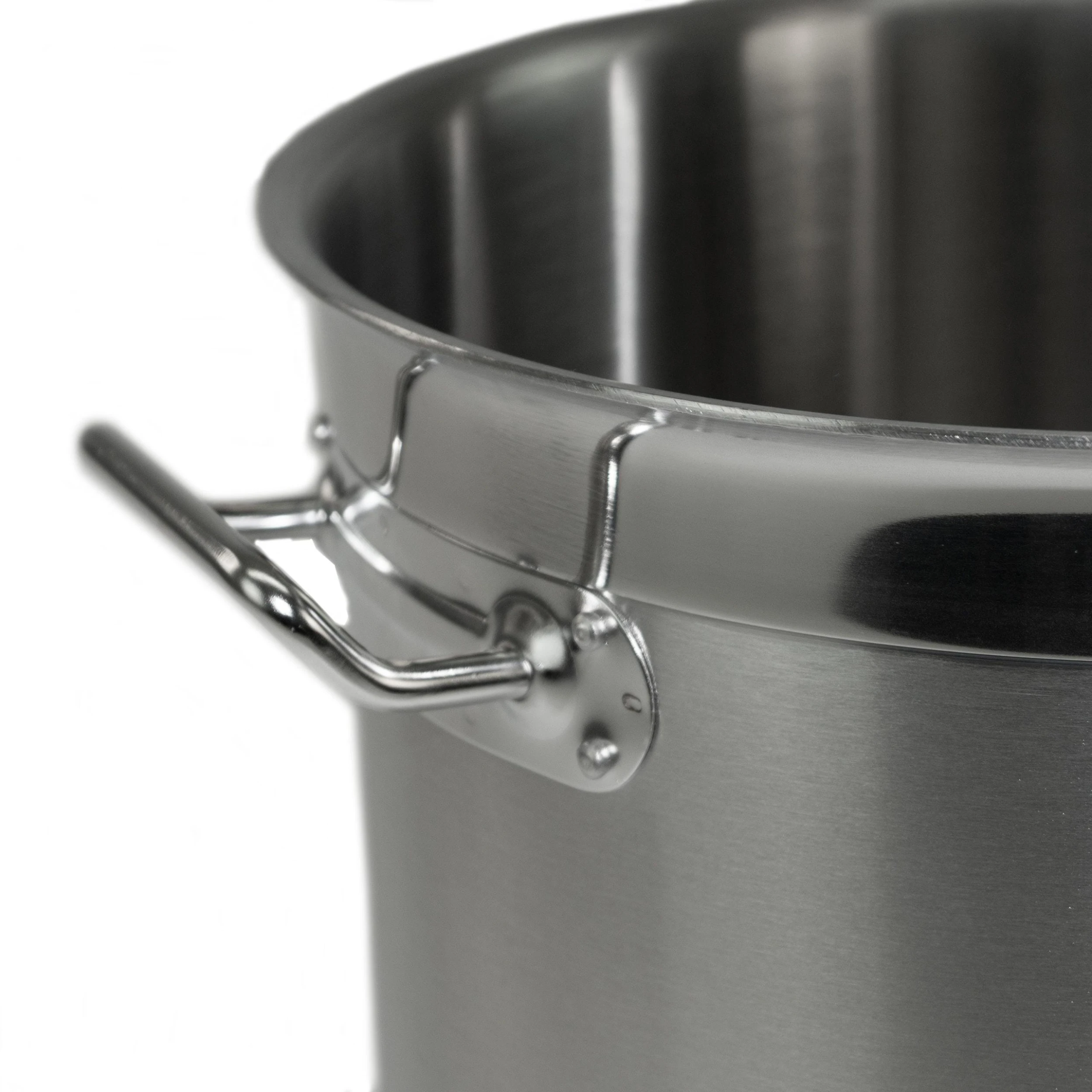 Ergonomisch geformte Griffe aus rundem Edelstahl an Topf und Deckel