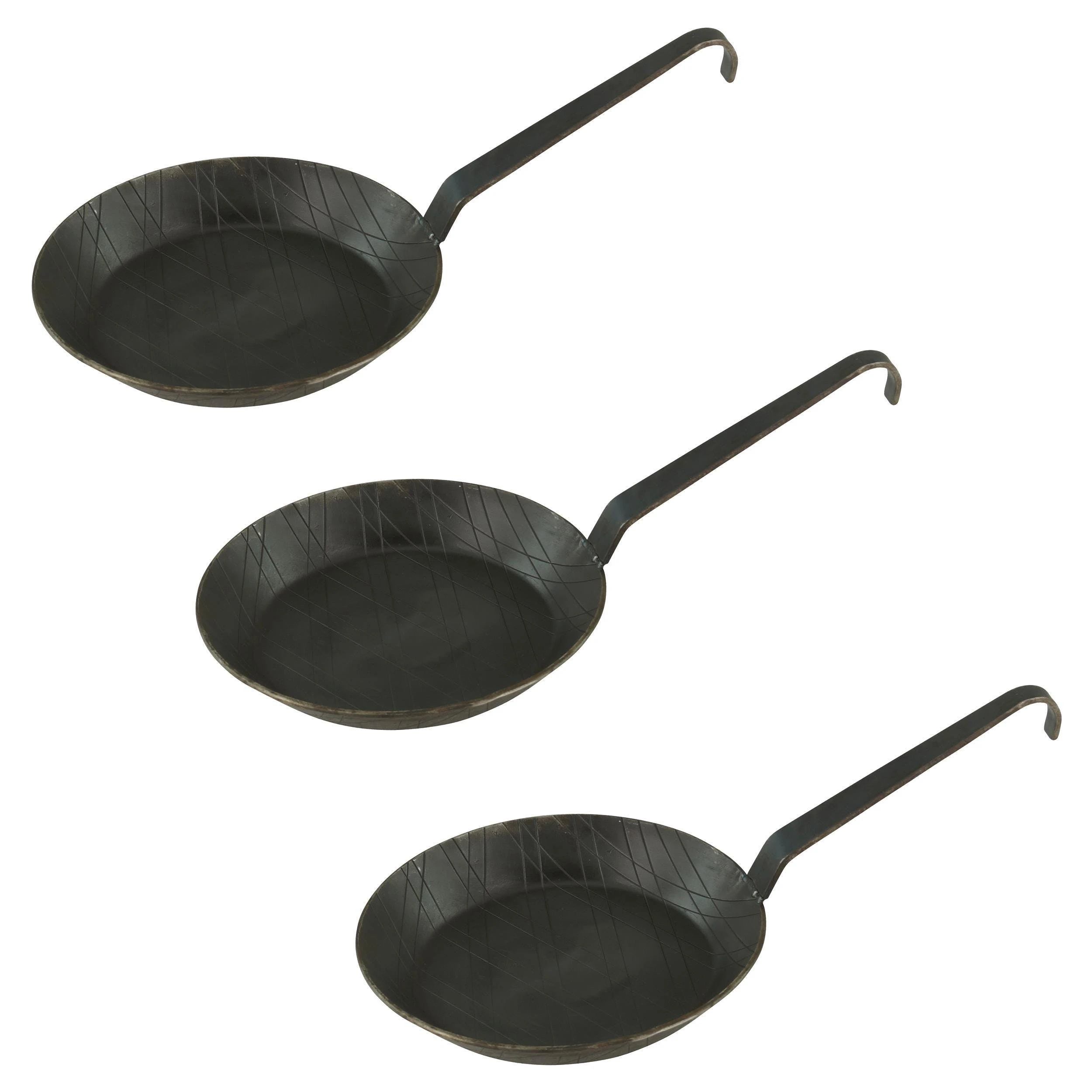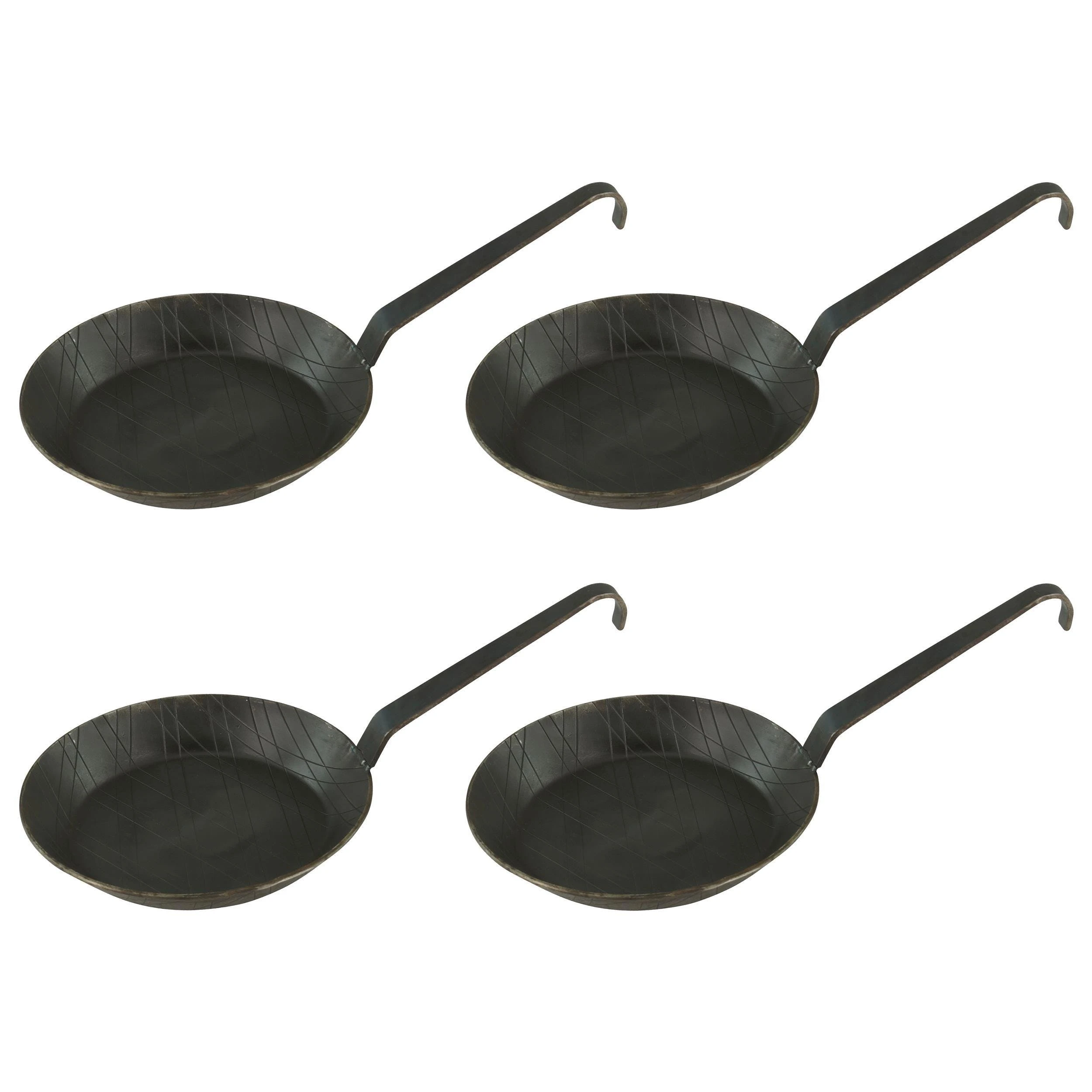 4 Stück Typ 1 – Schmiedeeiserne Brat- und Servierpfanne Ø 16 cm, Höhe 2,5 cm