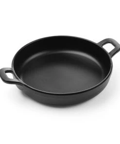 Melamin Präsentierschüsseln und -platten, geformt wie Kochgeschirr.