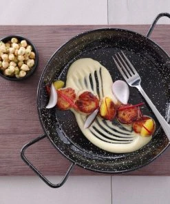 Mit 2 Griffen. Emaillierter Flachstahl.