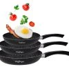 Hochwertige Bratpfannen aus Flachstahl. 2 Griffe. Pflegehinweis: Ölen Sie die Pfannen nach Gebrauch ein, um Rost vorzubeugen.