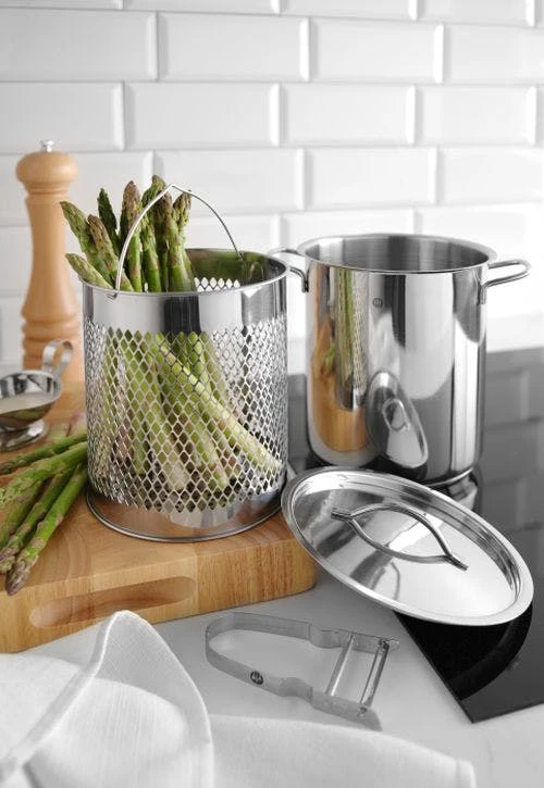 Die zusätzliche Höhe ermöglicht das Dämpfen von extra langem Spargel.