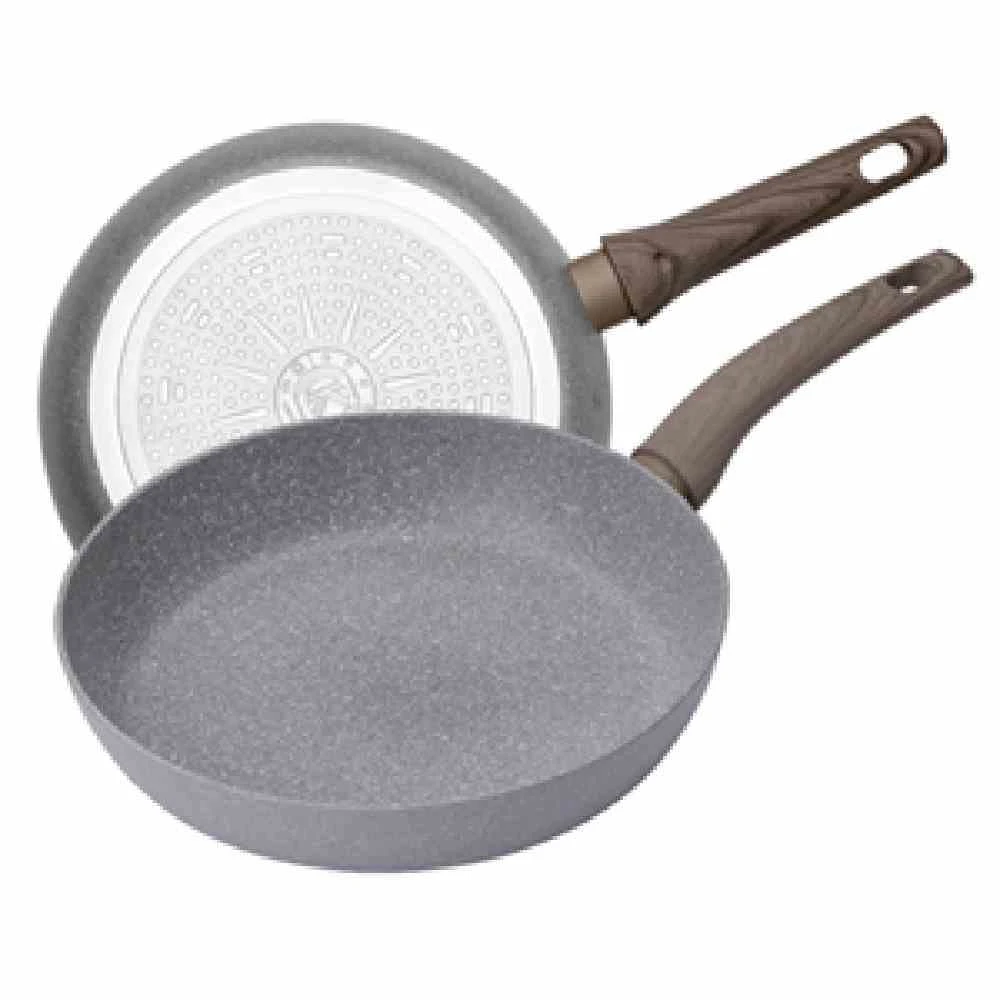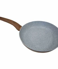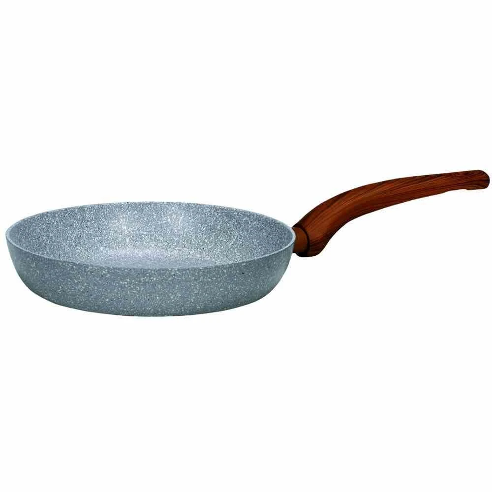 KRÜGER Pfanne “Nevada” 24 cm antihaftbeschichtet innen und außen Granit optisch gesprenkelt mit Softtouchgriff in Holzoptik + Flammschutz induktionsgeeignet sehr gute Wärmeleitfähigkeit