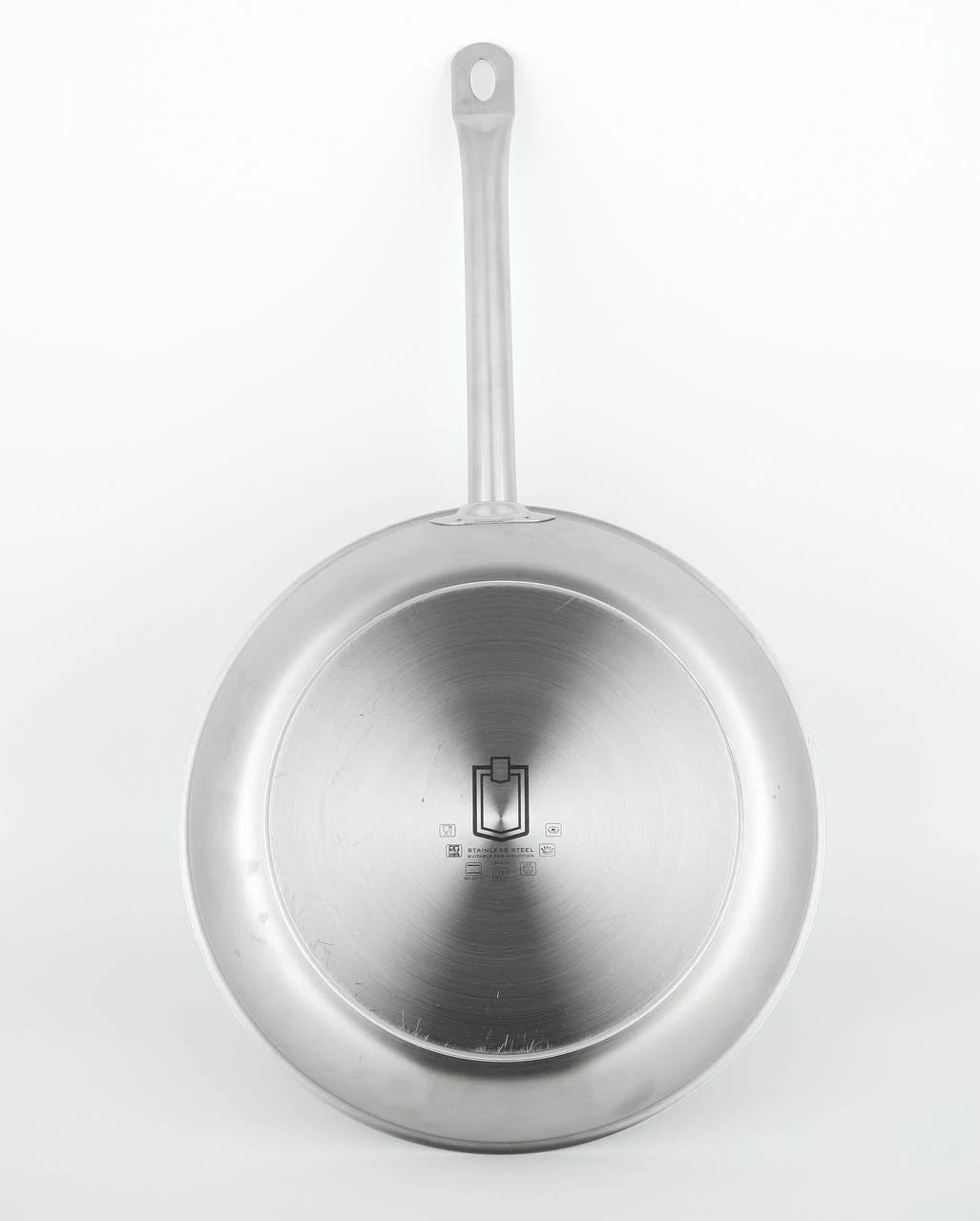 Die METRO Professional Edelstahlpfanne hat einen Durchmesser von 24 cm (Bodendurchmesser: 18 cm), eine Dicke von 0,8 mm und einen 4 mm dick Edelstahl-Sandwichboden mit Induktionsboden. Außerdem verfügt das Produkt über einen Edelstahlgriff und eine satinierte Außenseite aus Edelstahl 304. Die Pfanne ist für Elektro-, Gas-, Glaskeramik- und Induktionsherde geeignet.