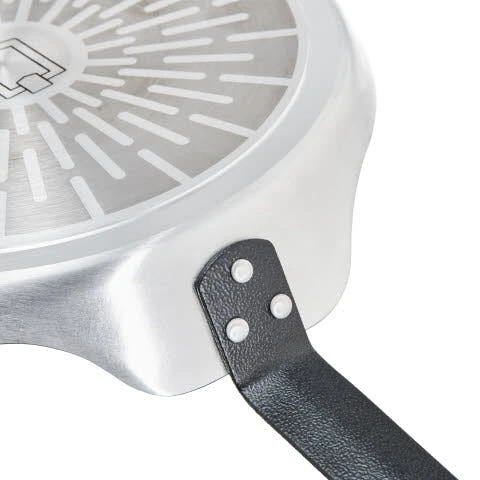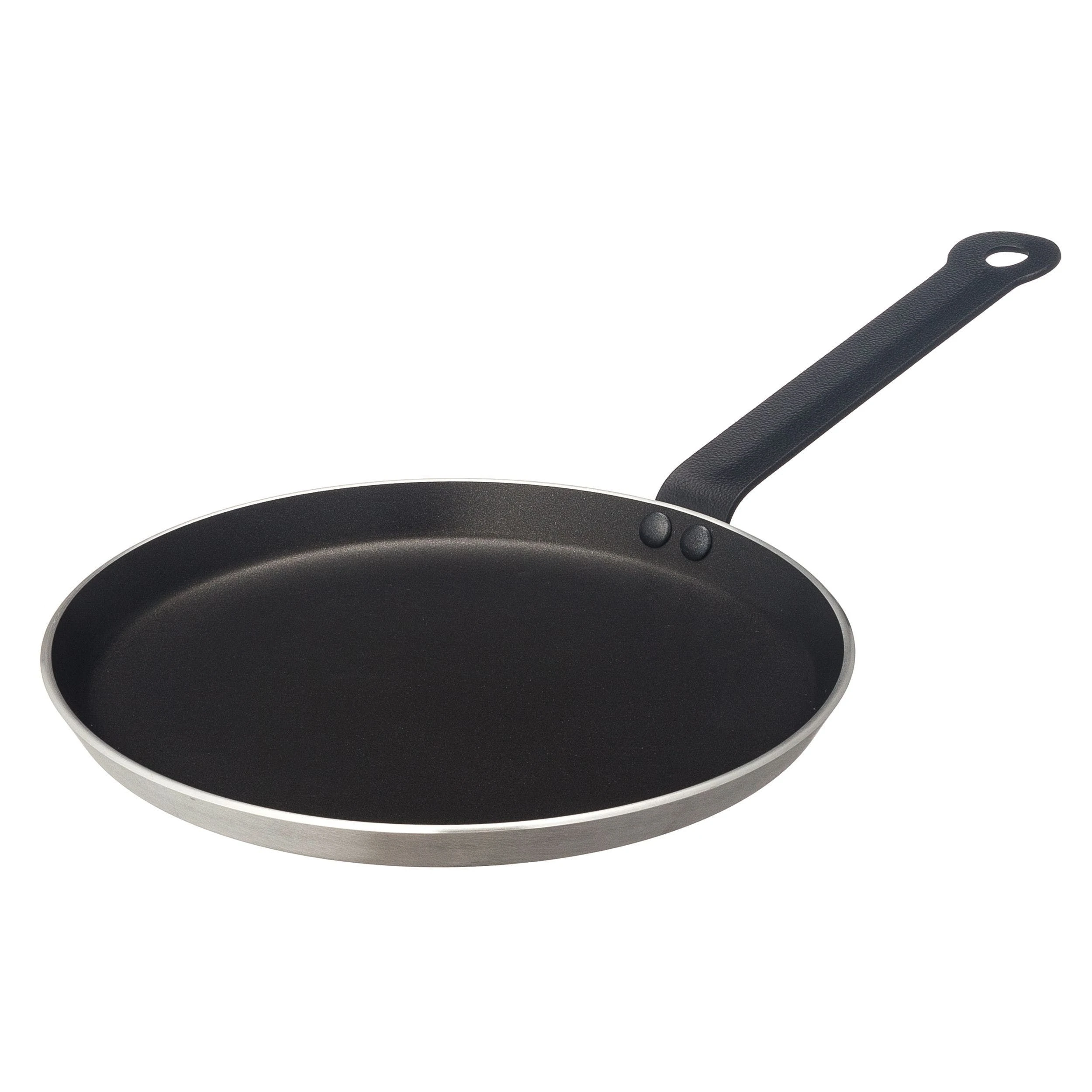 Die METRO Professional Aluminium-Crêpe-Pfanne hat eine antihaftbeschichtete Teflon-Innenfläche und ist für Ceran-, Elektro- und Gasherde geeignet. Die Höhe des Produkts ist 14 cm und 25 cm im Durchmesser. Es kann im Backofen bis zu einer Höchsttemperatur von 240°C verwendet werden. Farbe: schwarz/silber.