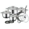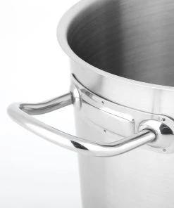 Der METRO Professional Edelstahlgemüsetopf hat einen Durchmesser von 20 cm und ein Fassungsvermögen von 5 l. Das Produkt hat eine Höhe von 17,5 cm, eine Dicke von 0,6 mm und einen 3.5 mm Aluminium-Sandwichboden mit Induktionsboden. Außerdem verfügt das Produkt über einen Edelstahlgriff und eine satinierte Außenseite aus Edelstahl 304. Der Topf ist für Elektro-, Gas-, Glaskeramik- und Induktionsherde geeignet.