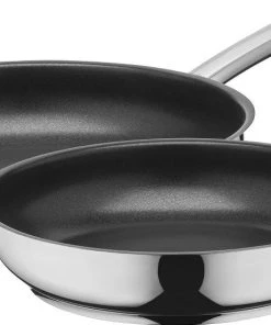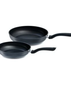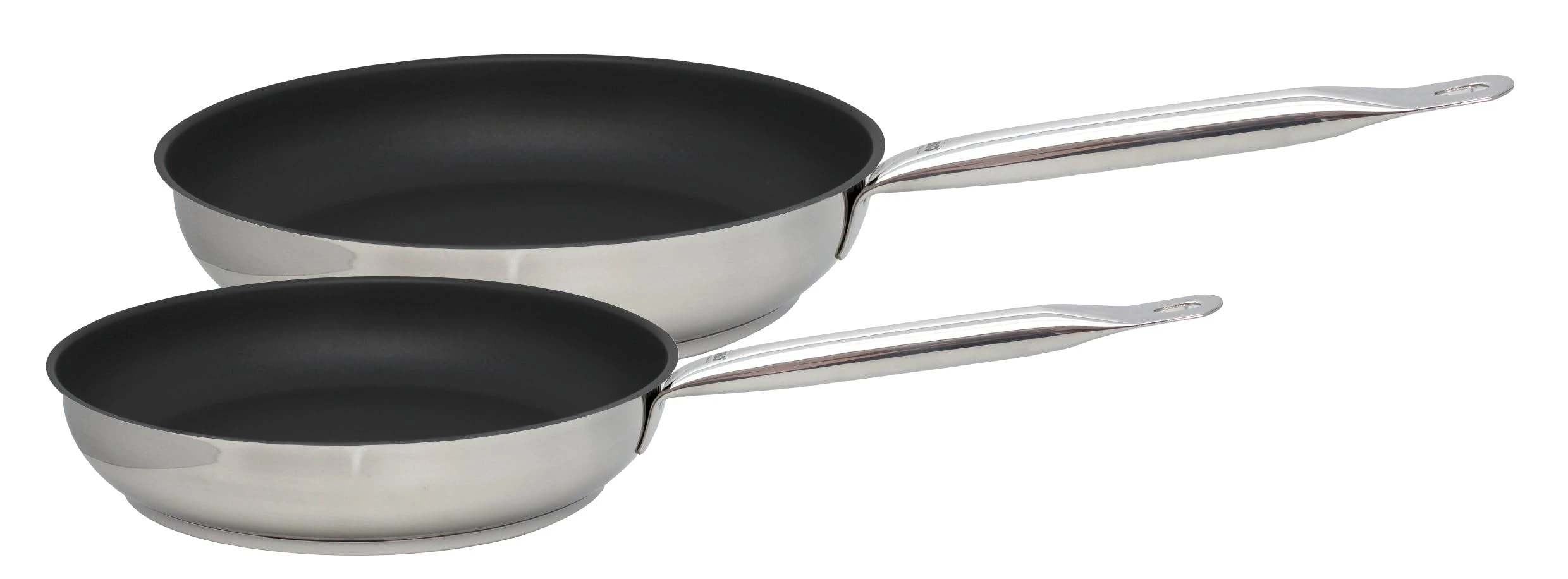 Das METRO Professional Set besteht aus 3 Edelstahlpfannen mit Antihaftbeschichtung. Die Pfannen haben einen Durchmesser von Ø 24, 28 und 32 cm, eine Höhe von 7.6/ 7.8 und 8.5 cm und ihre Böden haben einen Durchmesser von 18 cm (5 mm dick), 22.1 cm (5 mm dick) bzw. 23.9 cm (5.3 mm dick). Sie sind für den Backofen (bis 240 °C) und für Elektro-, Gas-, Glaskeramik- und Induktionsherde geeignet.