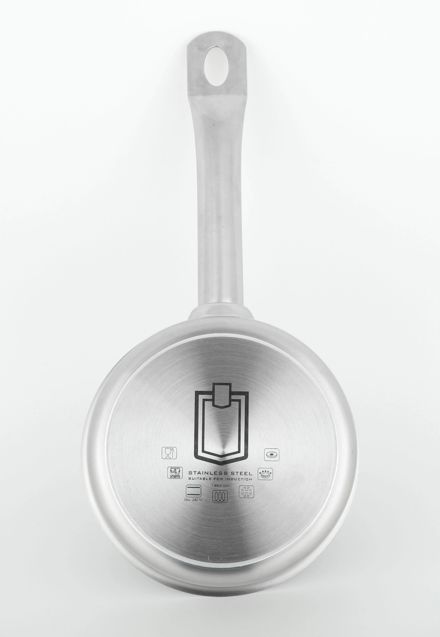 Der METRO Professional Saucentopf ist aus Edelstahl gefertigt und hat ein Durchmesser von 28 cm.