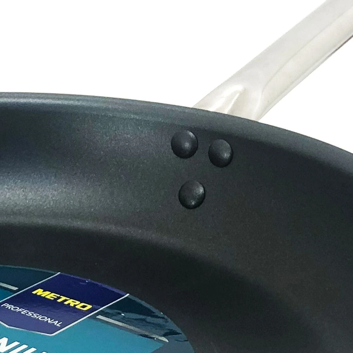 Diese METRO Professional Pfanne ist aus Aluminium gefertigt und hat ein Durchmesser von 36 cm und eine Höhe von 13 cm. Der Boden der Pfanne hat einen Durchmesser von 28.3 cm und eine Dicke von 2.7 mm, während der Wanddicke ca. 2.8 mm beträgt. Dank der doppelschichtigen Oberfläche und der Teflonbeschichtung ist das Produkt antihaftbeschichtet, so dass die Speisen gut und einfach vorbereitet werden können. Der komfortable Edelstahlgriff sorgt für extra Komfort beim Kochen. Darüber hinaus ist die Pfanne für Elektro-, Keramik- ,Gas- und Ofen (max. 240°C) sowie für die Spülmaschine geeignet.