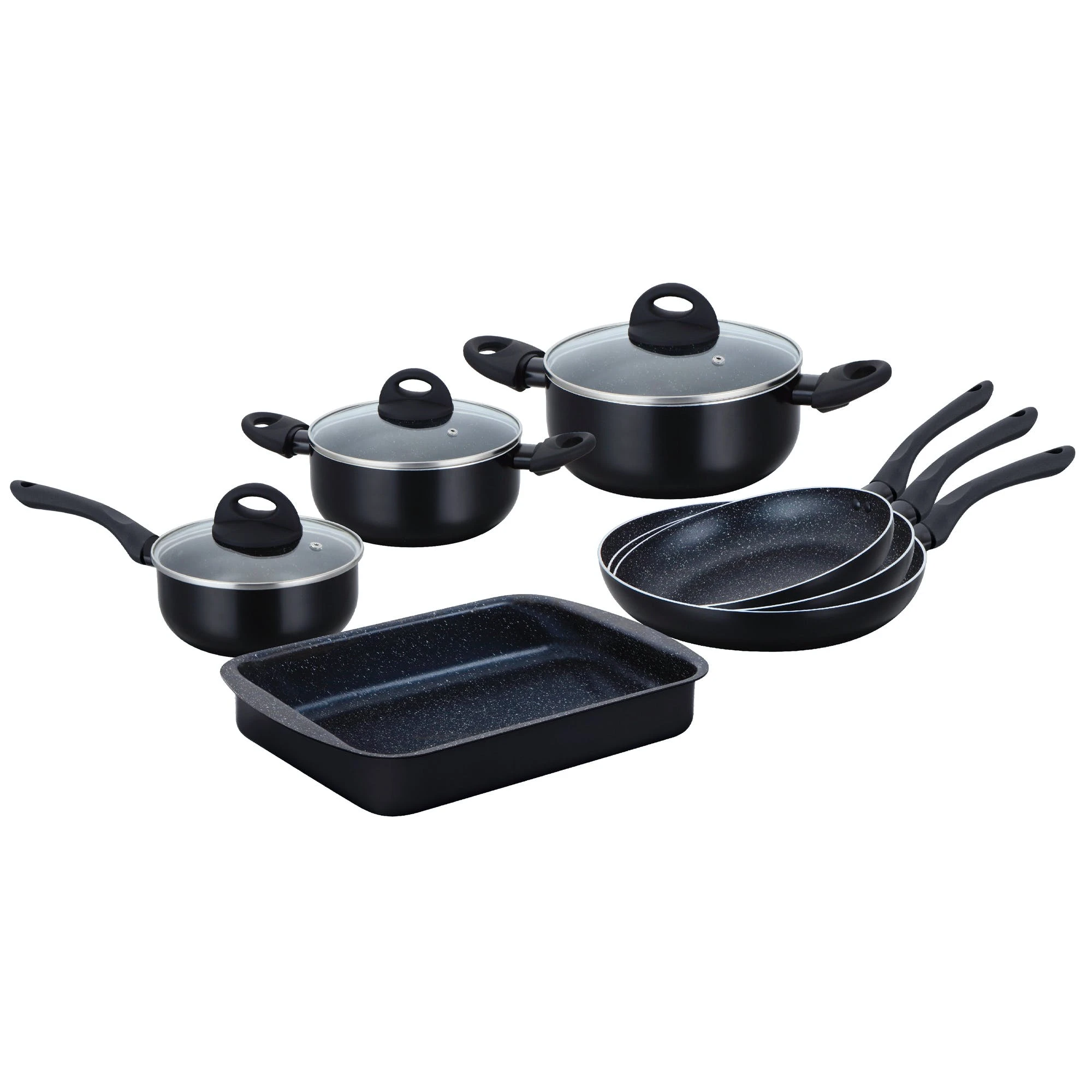 10-Teiliges marmorbeschichtetes Kochgeschirr-Set – Silber