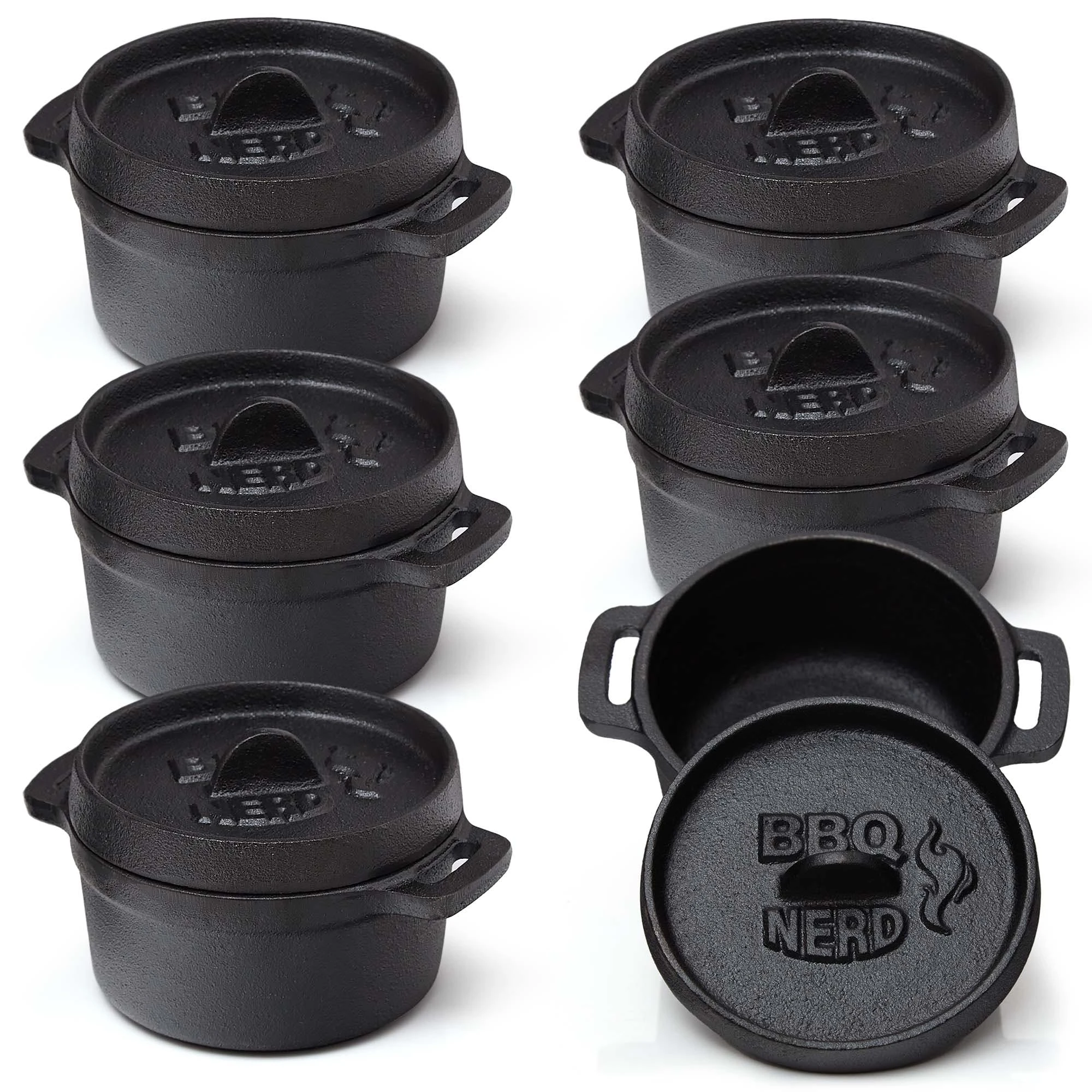 - FEUERFESTER SCHMORTOPF IM 6er PACK – Mit der traditionellen Cocotte von BBQ-Nerd© kannst Du verschiedenste Gerichte zubereiten (Fassungsvermögen = ca. 250 ml). Der Topf eignet sich zum Kochen, Schmoren, Braten und Backen!
